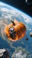"Le potiron enflammé traverse l'espace !" 🤯**Accroche :** "Imaginez une citrouille transformée en météore incandescent, flottant à travers le vide cosmique parmi les étoiles… Une scène incroyable ! 🔥🎃🚀"